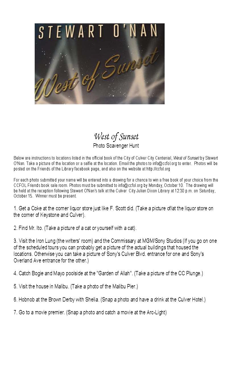 Culver City Friends of the Library Culver City Julian Dixon Library 4975 Overland Avenue Culver City, CA 90230 (310) 559-1676 www.ccfol.org
